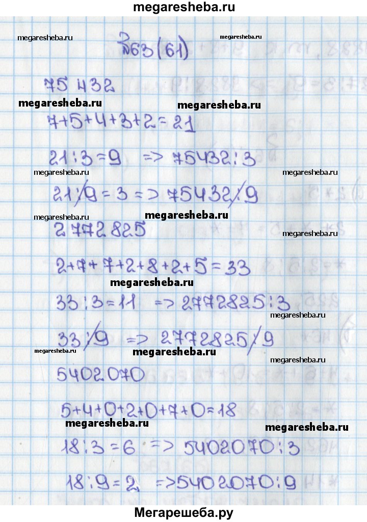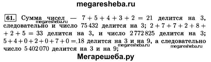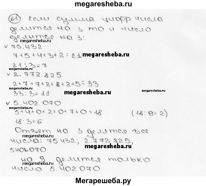 61. Какие из чисел 75 432, 2 772 825, 5 402070 делятся на 3? Какие из них делятся на 9?