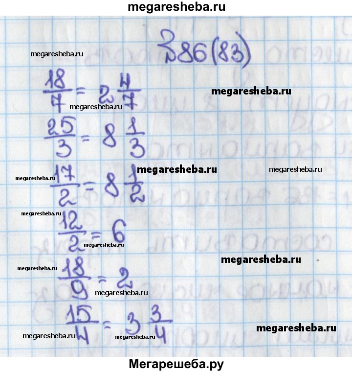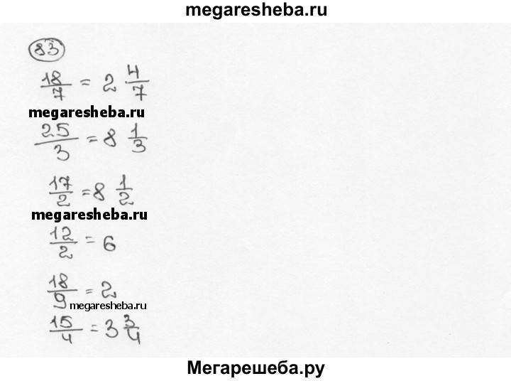 83. Исключите целую часть из чисел: 18/7, 25/3, 17/2, 12/2, 18/9, 15/4.
