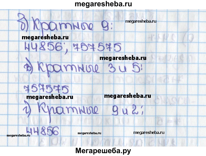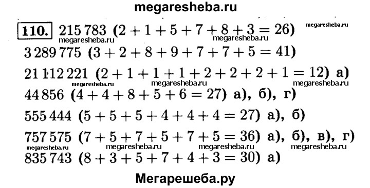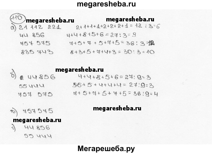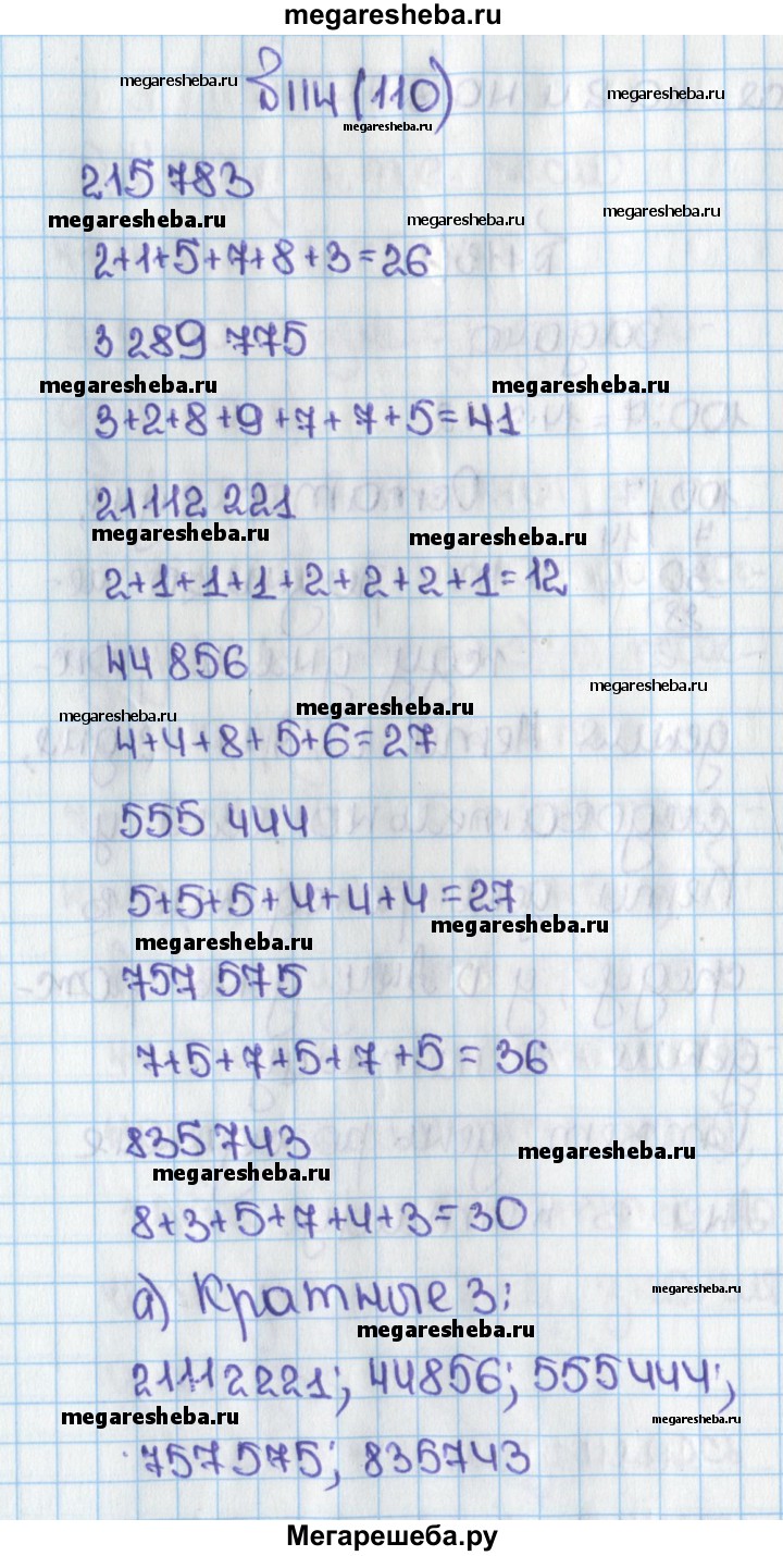 110. Выпишите из чисел 215 783, 3 289 775, 21 112 221, 44 856, 555 444, 757 575, 835 743 те, которые: а) кратны 3; б) кратны 9; в) делятся без остатка на 3 и на 5; г) кратны 9 и 2.