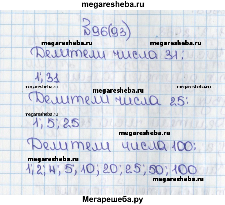 93. Сколько делителей имеет каждое из чисел: 31, 25, 100?