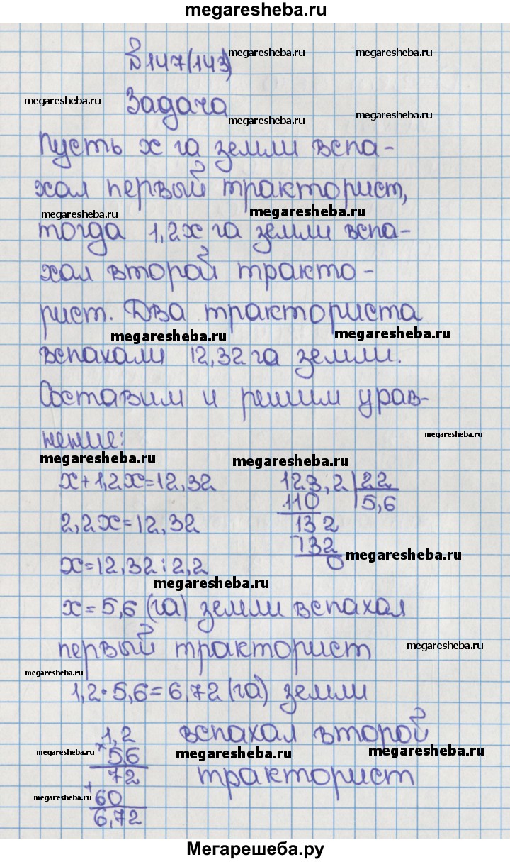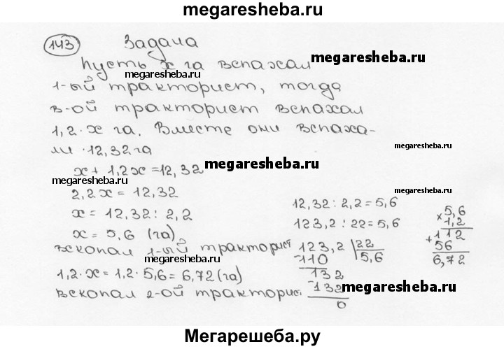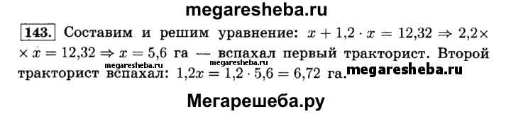 143. Два тракториста вспахали 12,32 га земли, причём один из них вспахал в 1,2 раза меньше другого. Сколько гектаров земли вспахал каждый тракторист?