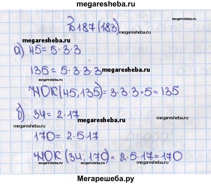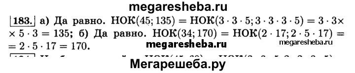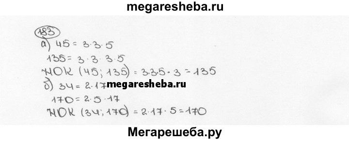 183. Найдите наименьшее общее кратное чисел: а) 45 и 135; б) 34 и 170. Равно ли оно одному из данных чисел?