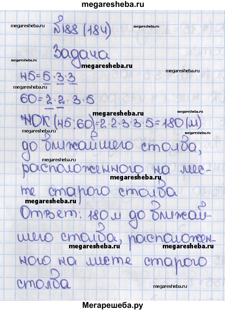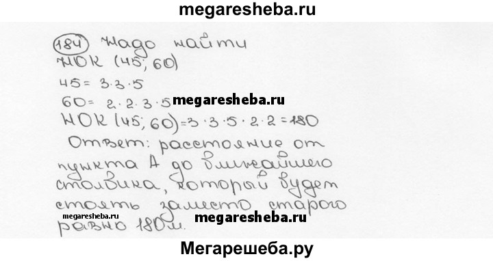 184. Вдоль дороги от пункта А поставлены столбы через каждые 45 м. Эти столбы решили заменить другими, поставив их на расстоянии 60 м друг от друга. Найдите расстояние от пункта А до ближайшего столба, который будет стоять на месте старого, кроме столба в точке А.