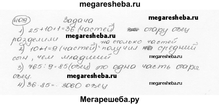 409. Три сына хана получили в наследство большую отару овец. Старшему сыну достались 25 частей стада, среднему — 10 частей, а младшему — 1 часть. Сколько овец было в отаре, если средний брат получил на 765 овец больше, чем младший?