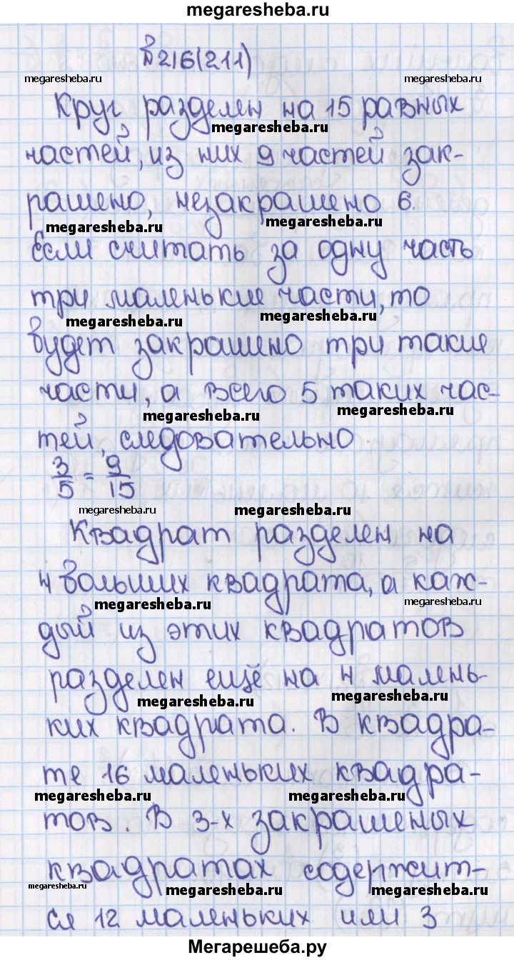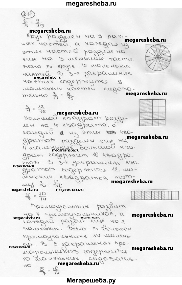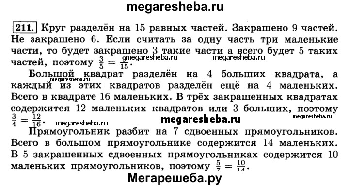 211. Используя рисунок 9, объясните, почему равны дроби: 3/5 = 9/15; 3/4 = 12/16; 5/7 = 10/14.
