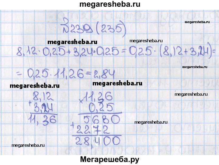 235. Выполните действия: 8,12 * 0,25 + 3,24 * 0,25.