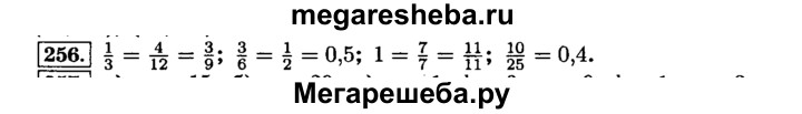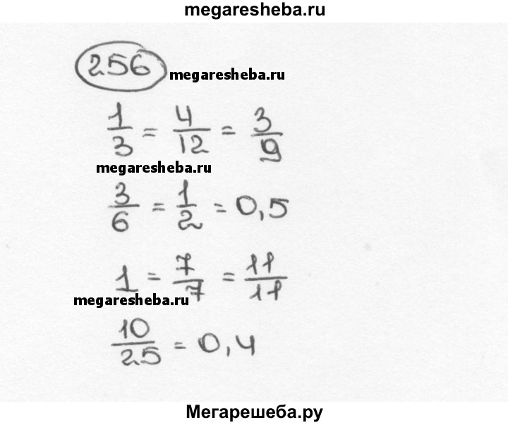 256. Найдите равные среди чисел: 1/3; 3/6; 1; 4/12; 10/25; 1/2; 3/9; 7/7; 0,5; 11/11; 0,4.