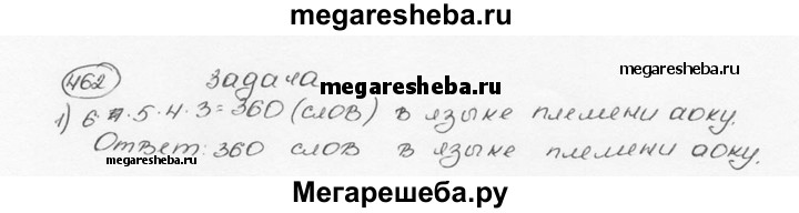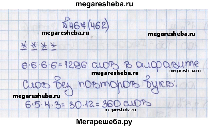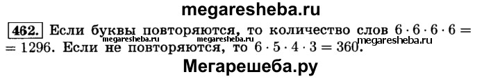 462. В алфавите племени аоку всего 6 букв — А, К, М, О, Р, У. Все слова в языке этого племени состоят из четырёх букв. Какое наибольшее число слов может быть в языке племени аоку? В скольких из этих слов буквы не повторяются?