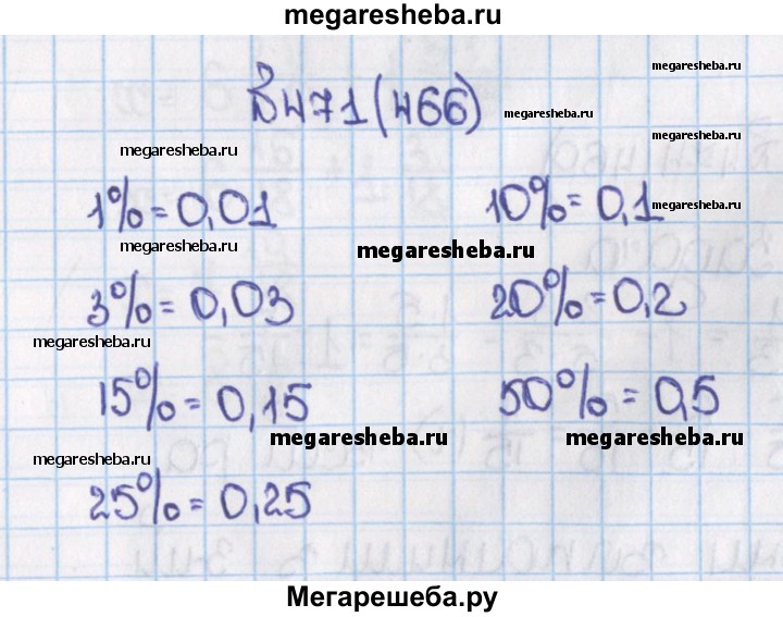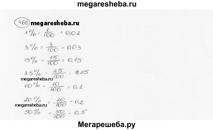 466. Запишите, какую часть числа составляют: 1%, 3%, 15%, 25%, 10%, 20%, 50%.