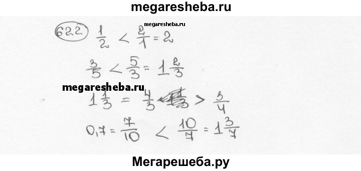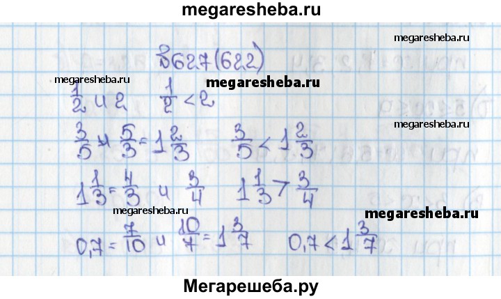 622. Найдите число, обратное дроби: 1/2, 3/5, 1*1/3, 0,7. Сравните данное число и ему обратное.