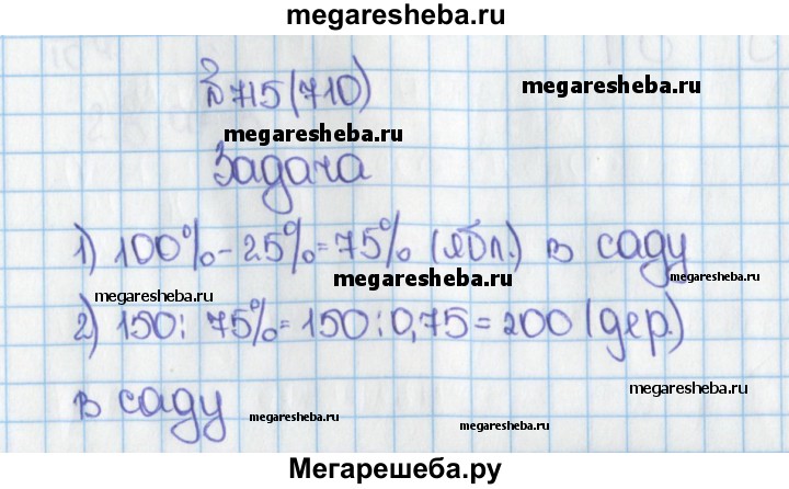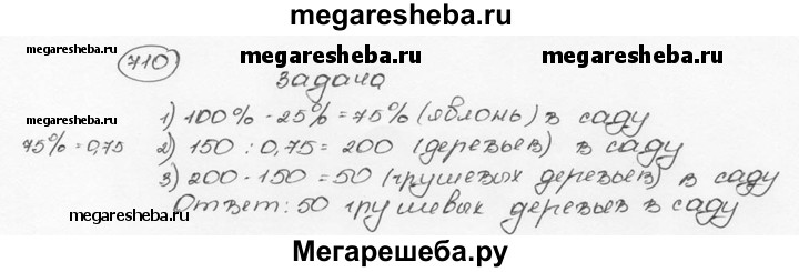 710. Груши составляют 25% всех деревьев сада, остальные 150 деревьев — яблони. Сколько грушевых деревьев в саду?