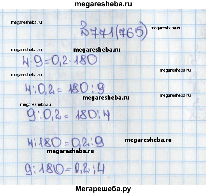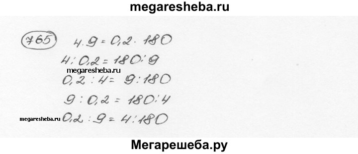 765. Используя верное равенство 4 • 9 = 0,2 • 180, составьте четыре верные пропорции.