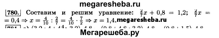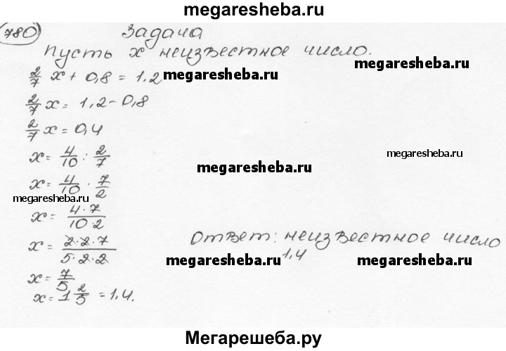 780. Если к 2/7 неизвестного числа прибавить 0,8, то получится 1,2. Найдите неизвестное число.