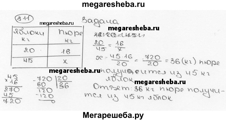 811. Из 20 кг яблок получается 16 кг яблочного пюре. Сколько яблочного пюре получится из 45 кг яблок?