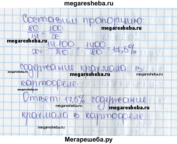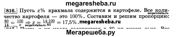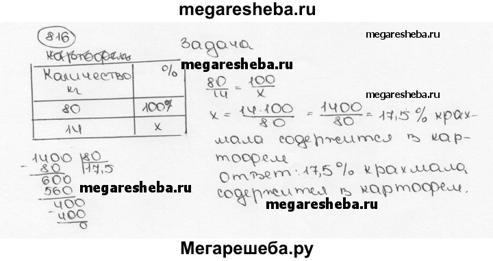 816. В 80 кг картофеля содержится 14 кг крахмала. Найдите процентное содержание крахмала в таком картофеле.