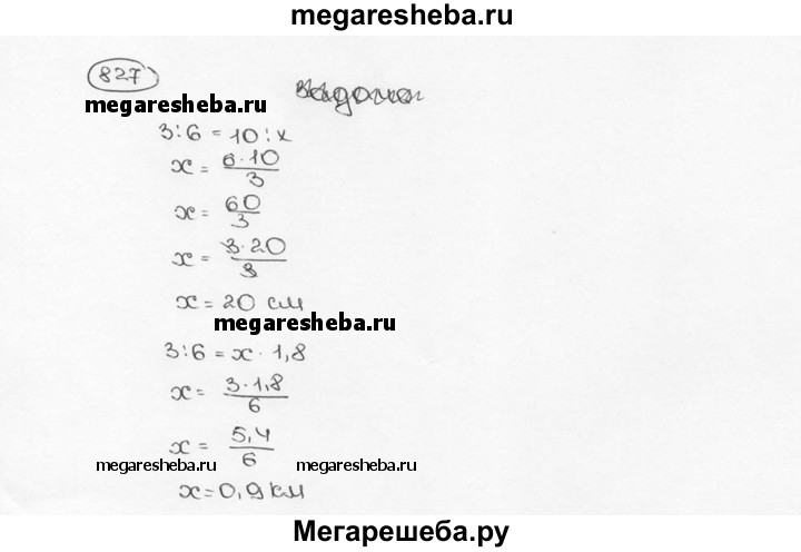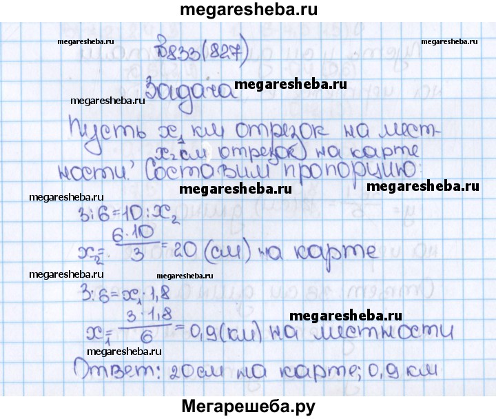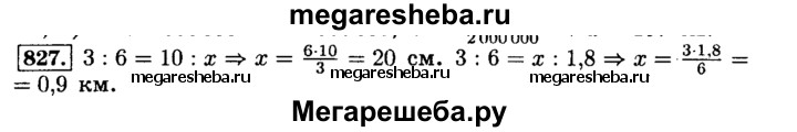 827. Отрезок на местности длиной 3 км изображён на карте отрезком 6 см. Какова на карте длина отрезка, изображающего отрезок 10 км? Какой отрезок на местности изображает отрезок на карте длиной 1,8 см?
