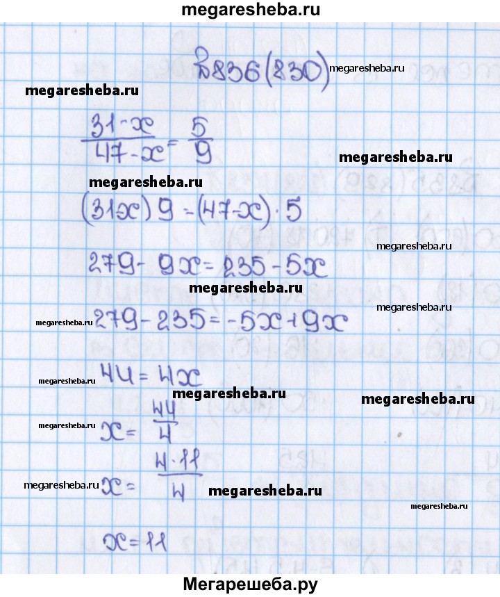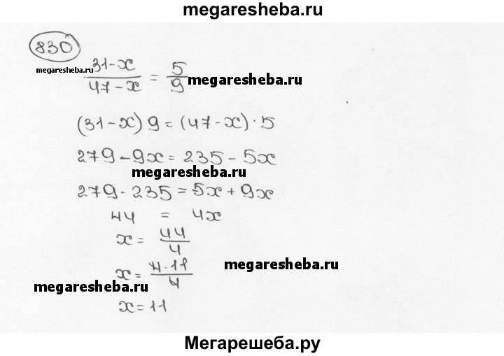 830. Какое число надо отнять от числителя и знаменателя дроби чтобы получить дробь, равную 5/9?