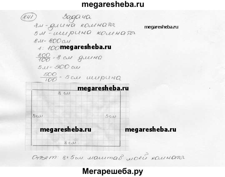 841. Измерьте длину и ширину своей комнаты. Начертите в тетради план этой комнаты в масштабе 1 : 100.
