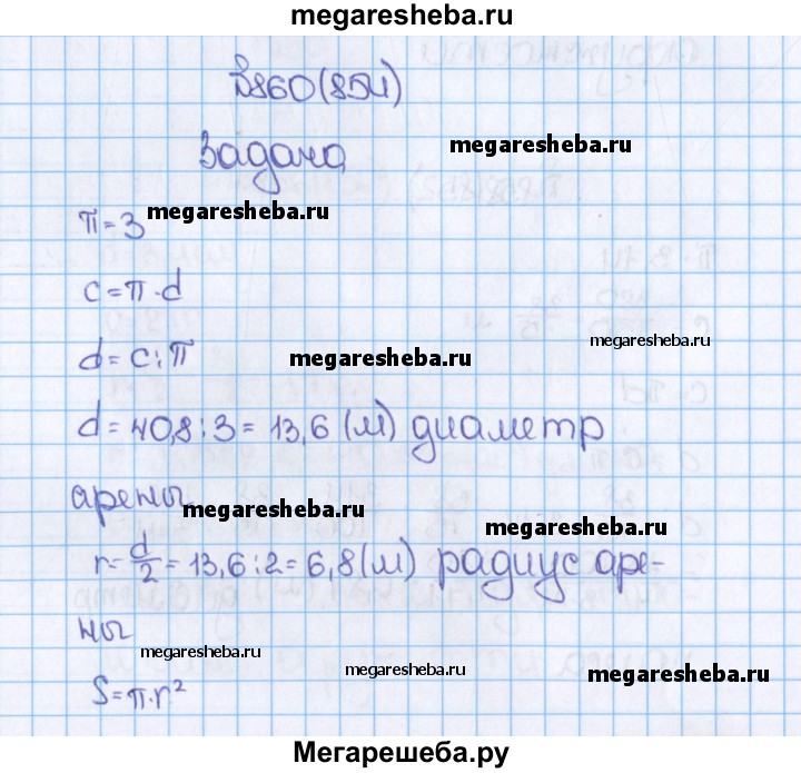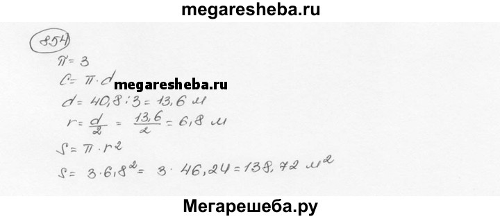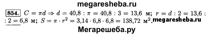 854. Окружность арены во всех цирках мира имеет длину 40,8 м. Найдите диаметр и площадь арены (π ≈ 3)