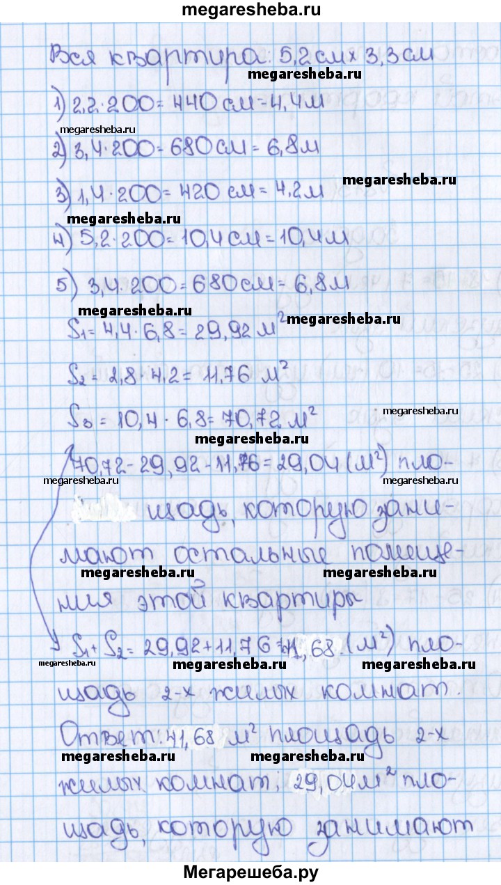 866. На рисунке 45 изображён план двухкомнатной квартиры в масштабе 1 : 200. Определите по плану сумму площадей двух жилых комнат (I и II) и площадь, которую занимают остальные помещения этой квартиры.
