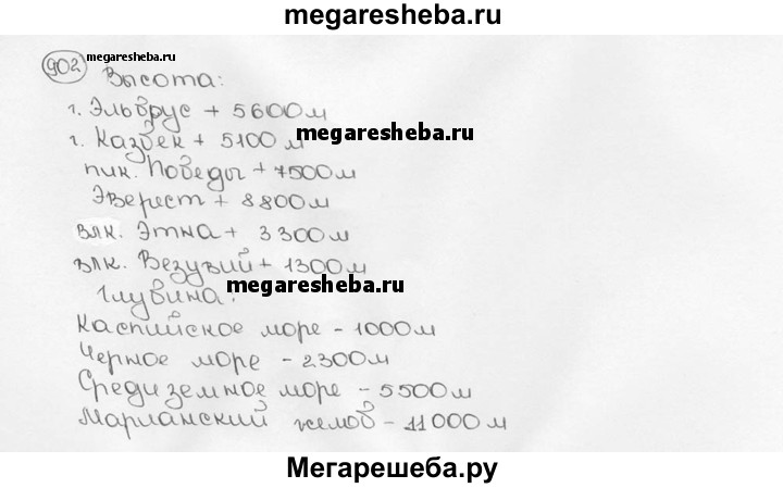 902. Найдите по шкале высоты гор и глубины морей и океанов.