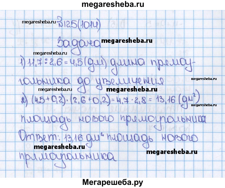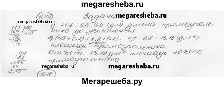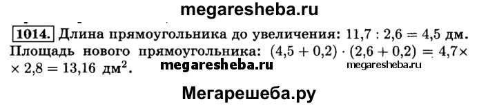 1014. Площадь прямоугольника 11,7 дм2, ширина этого прямоугольника 2,6 дм. Все его стороны увеличили на 0,2 дм. Найдите площадь нового прямоугольника.