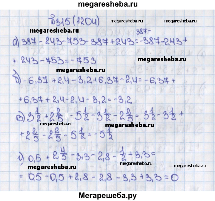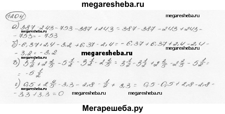 1204. Сложив сначала противоположные числа, найдите значение выражения.