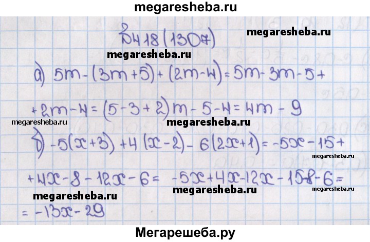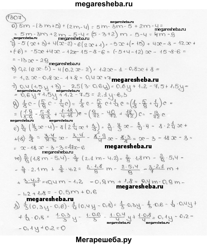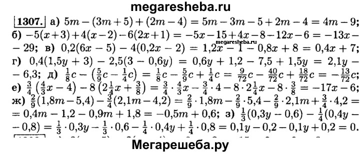 1307. Раскройте скобки и приведите подобные слагаемые.