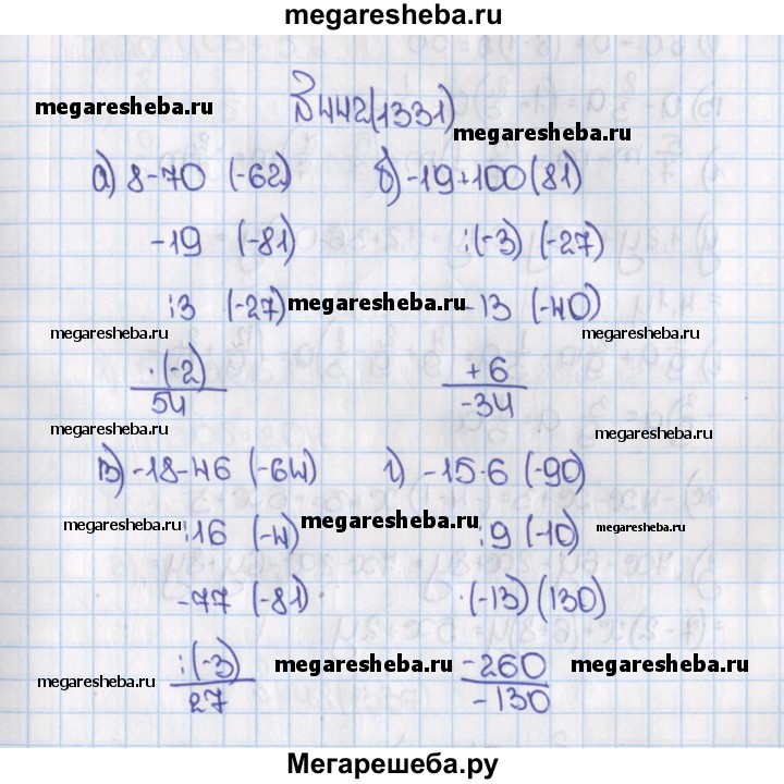 1331. Вычислите устно: а) 8-70-19: 3•(-2) /? б) -19 + 100 :(-3)-13+6/? в) -18 - 46: 16-77:(-3)/? г) -15-6:9-(-13) -260 /?
