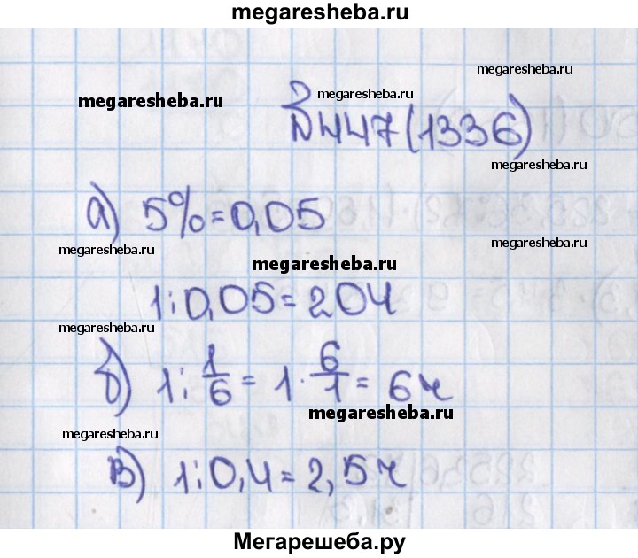 1336. За какое время всё свекловичное поле уберёт уборочная машина, и известно, что в) 0,4 всего поля? если известно, что она за 1 ч убирает: а) 5% всего поля; б) 1/6 всего поля;