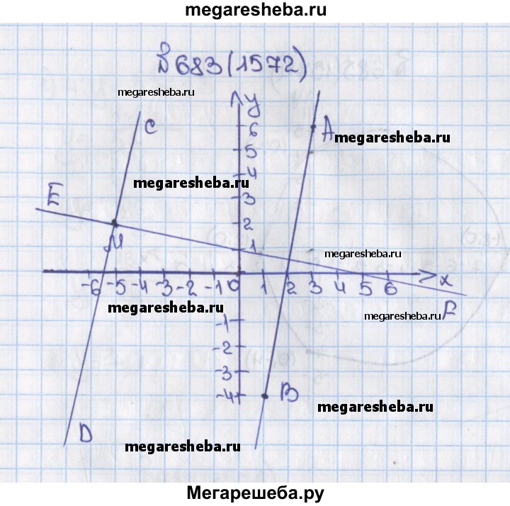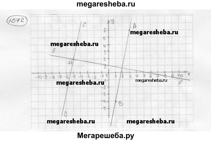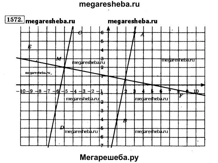1572. Отметьте на координатной плоскости точки А(3; 6), В(1; -4) и М(-5; 2). Проведите через точку М прямую CD, параллельную прямой АВ, и прямую EF, перпендикулярную прямой АВ.