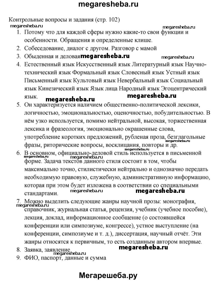 ГДЗ по русскому языку 6 класс Баранов контрольные вопросы часть 1 - стр. 102