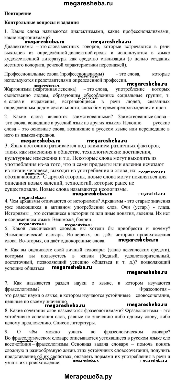 ГДЗ по русскому языку 6 класс Баранов контрольные вопросы часть 1 - стр. 146