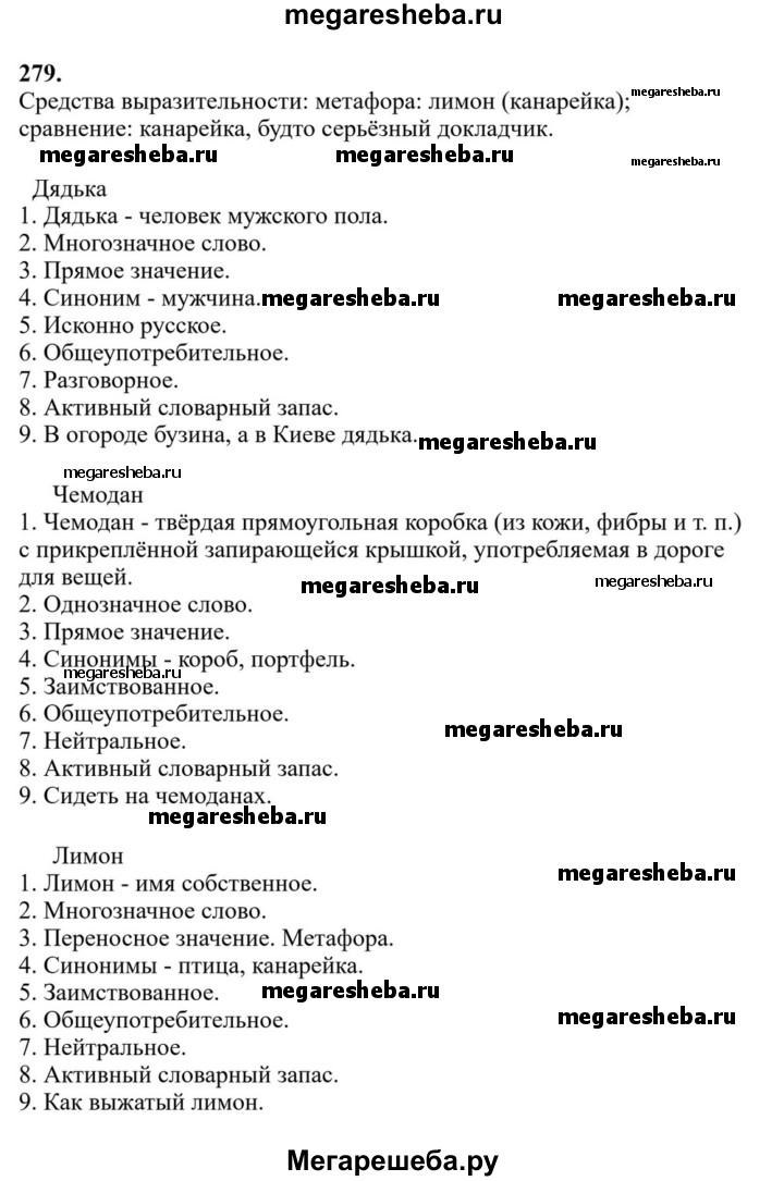 Подробный решебник (ГДЗ) по Русскому языку за 6 (шестой) класс - готовый ответ упражнение - 279. Авторы учебника: Баранов, Ладыженская, Тростенцова. Издательство: Просвещение 2015-2024.