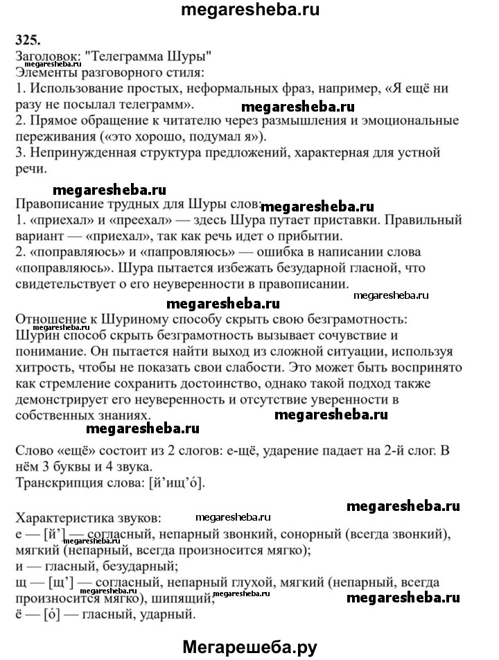 Подробный решебник (ГДЗ) по Русскому языку за 6 (шестой) класс - готовый ответ упражнение - 325. Авторы учебника: Баранов, Ладыженская, Тростенцова. Издательство: Просвещение 2015-2024.