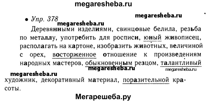 Подробный решебник (ГДЗ) по Русскому языку за 6 (шестой) класс - готовый ответ упражнение - 378. Авторы учебника: Баранов, Ладыженская, Тростенцова. Издательство: Просвещение 2015-2024.