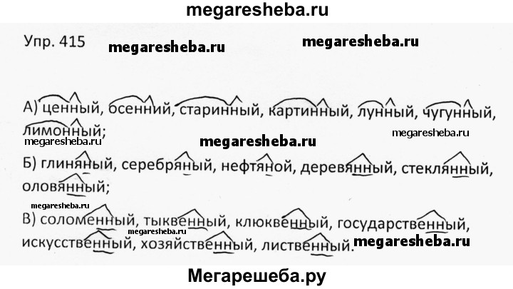 Подробный решебник (ГДЗ) по Русскому языку за 6 (шестой) класс - готовый ответ упражнение - 415. Авторы учебника: Баранов, Ладыженская, Тростенцова. Издательство: Просвещение 2015-2024.