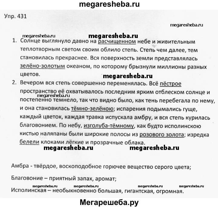 Подробный решебник (ГДЗ) по Русскому языку за 6 (шестой) класс - готовый ответ упражнение - 431. Авторы учебника: Баранов, Ладыженская, Тростенцова. Издательство: Просвещение 2015-2024.