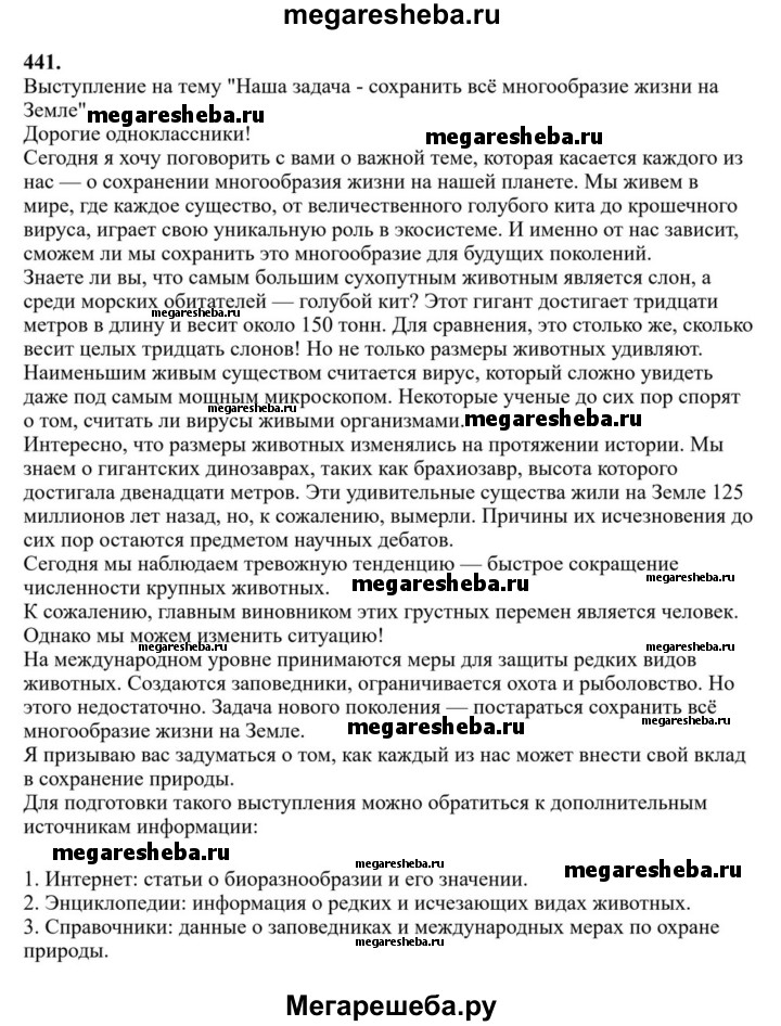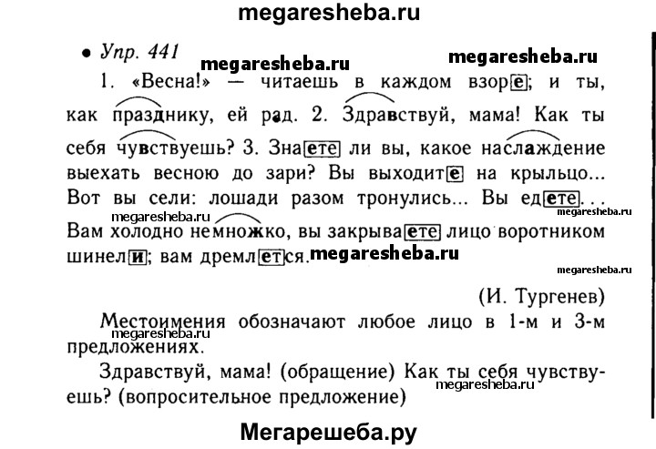 Подробный решебник (ГДЗ) по Русскому языку за 6 (шестой) класс - готовый ответ упражнение - 441. Авторы учебника: Баранов, Ладыженская, Тростенцова. Издательство: Просвещение 2015-2024.