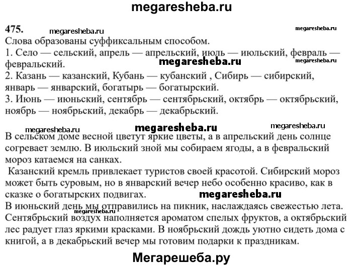 Подробный решебник (ГДЗ) по Русскому языку за 6 (шестой) класс - готовый ответ упражнение - 475. Авторы учебника: Баранов, Ладыженская, Тростенцова. Издательство: Просвещение 2015-2024.