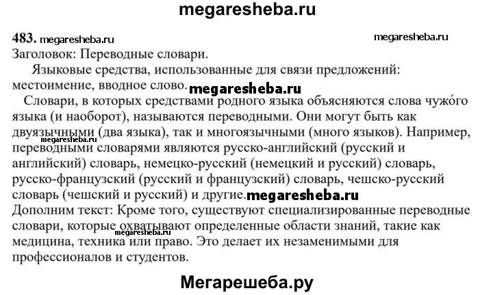 ГДЗ по русскому языку 6 класс Баранов упражнение - 483