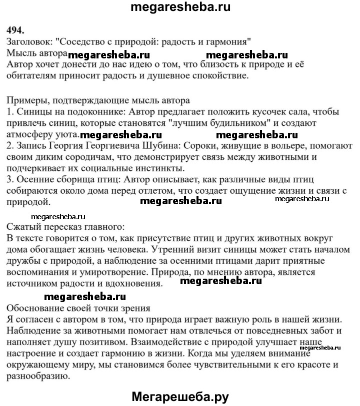 Подробный решебник (ГДЗ) по Русскому языку за 6 (шестой) класс - готовый ответ упражнение - 494. Авторы учебника: Баранов, Ладыженская, Тростенцова. Издательство: Просвещение 2015-2024.