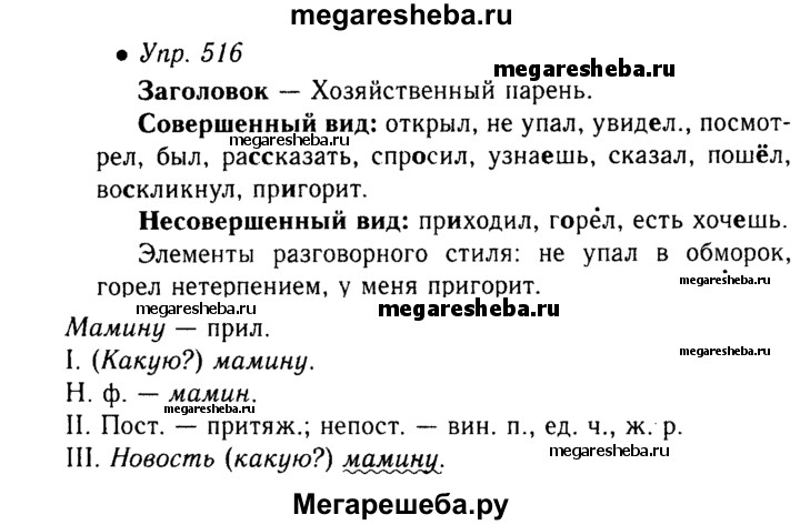 ГДЗ по русскому языку 6 класс Баранов упражнение - 516