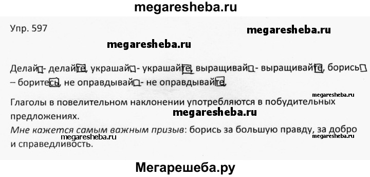 Подробный решебник (ГДЗ) по Русскому языку за 6 (шестой) класс - готовый ответ упражнение - 597. Авторы учебника: Баранов, Ладыженская, Тростенцова. Издательство: Просвещение 2015-2024.
