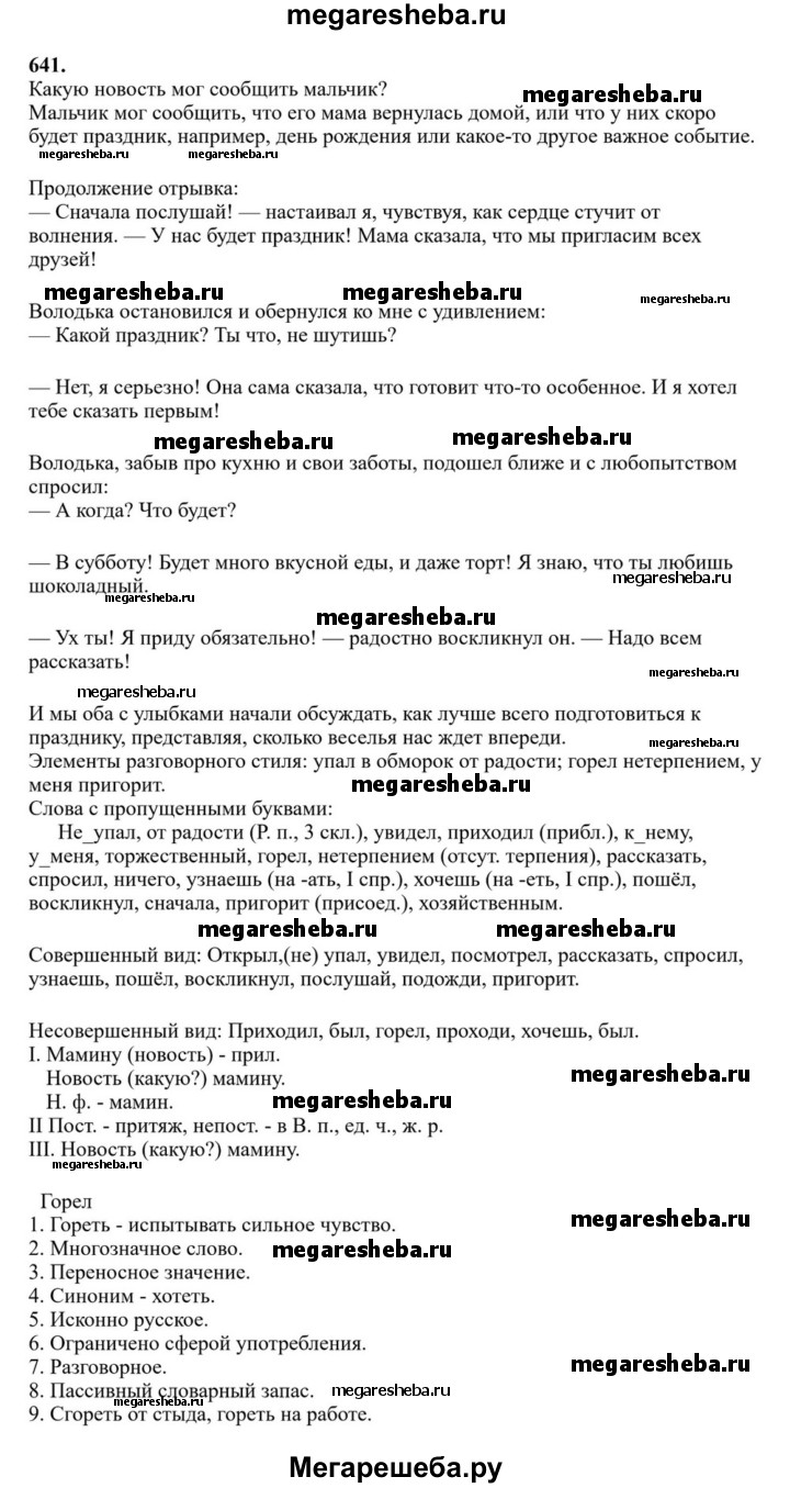 Подробный решебник (ГДЗ) по Русскому языку за 6 (шестой) класс - готовый ответ упражнение - 641. Авторы учебника: Баранов, Ладыженская, Тростенцова. Издательство: Просвещение 2015-2024.