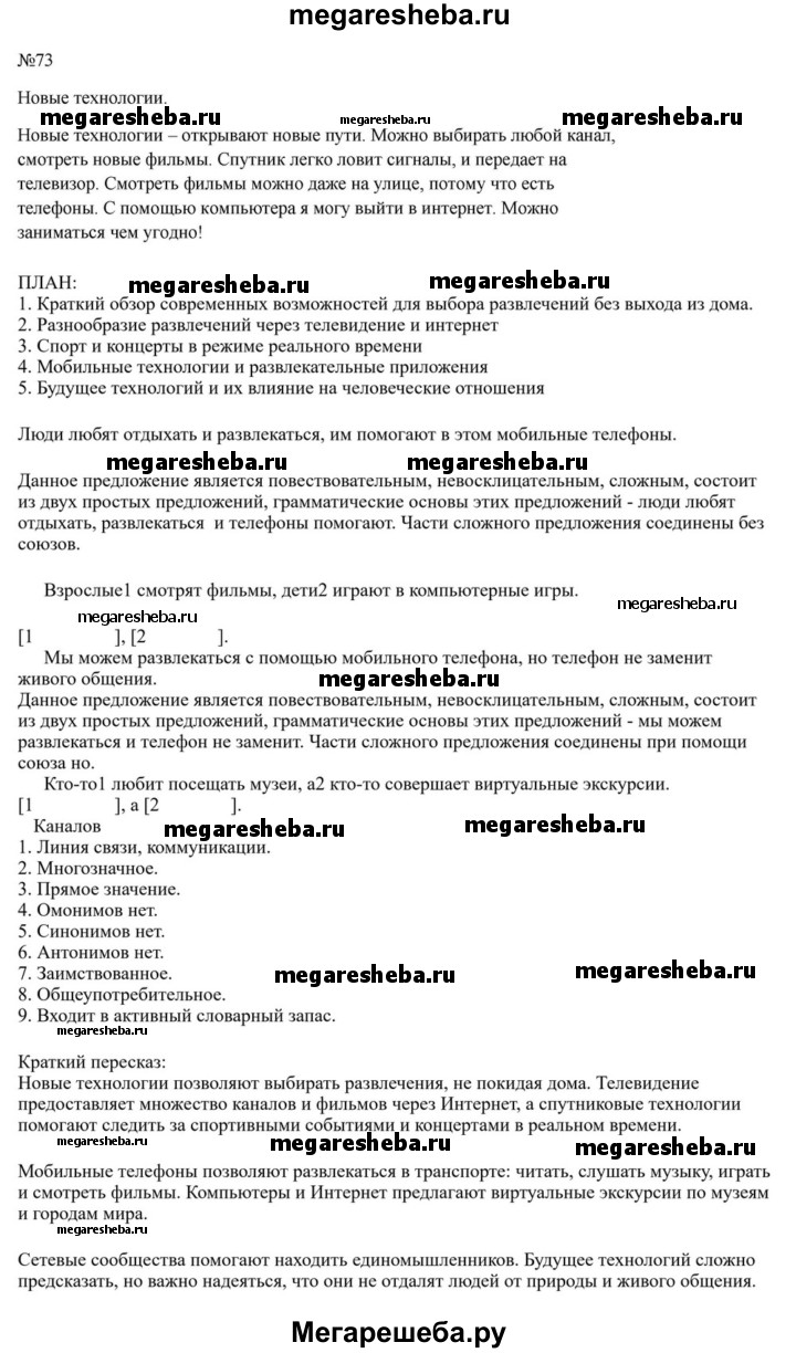 Подробный решебник (ГДЗ) по Русскому языку за 6 (шестой) класс - готовый ответ упражнение - 73. Авторы учебника: Баранов, Ладыженская, Тростенцова. Издательство: Просвещение 2015-2024.