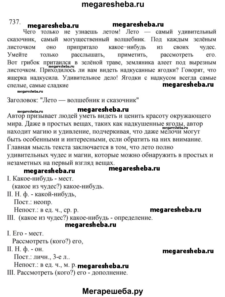 Подробный решебник (ГДЗ) по Русскому языку за 6 (шестой) класс - готовый ответ упражнение - 737. Авторы учебника: Баранов, Ладыженская, Тростенцова. Издательство: Просвещение 2015-2024.