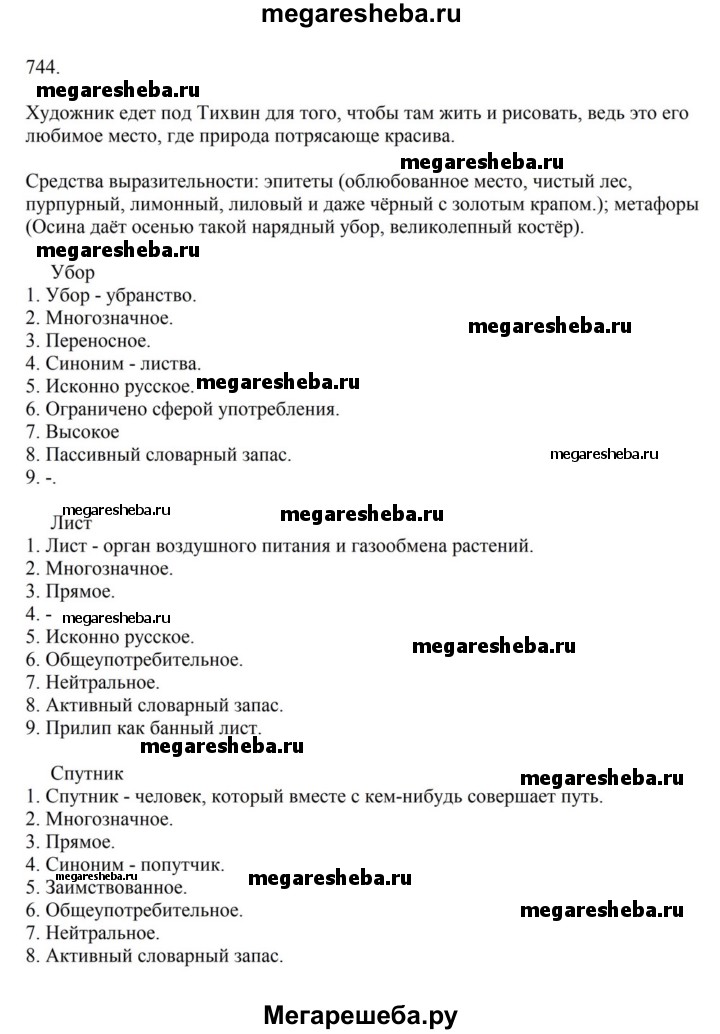 Подробный решебник (ГДЗ) по Русскому языку за 6 (шестой) класс - готовый ответ упражнение - 744. Авторы учебника: Баранов, Ладыженская, Тростенцова. Издательство: Просвещение 2015-2024.