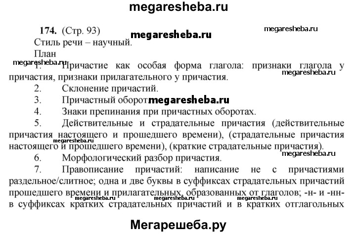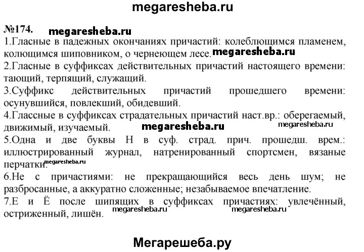 Подробный решебник (ГДЗ) по Русскому языку за 7 (седьмой) класс - готовый ответ упражнение - 174. Авторы учебника: Баранов, Ладыженская, Тростенцова. Издательство: Просвещение 2015-2024.