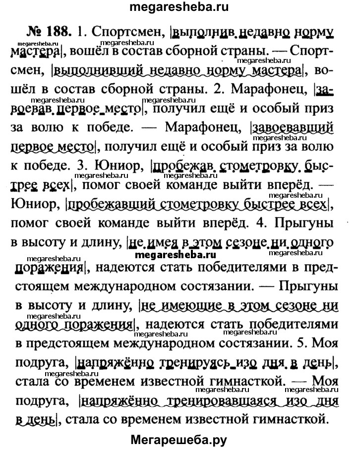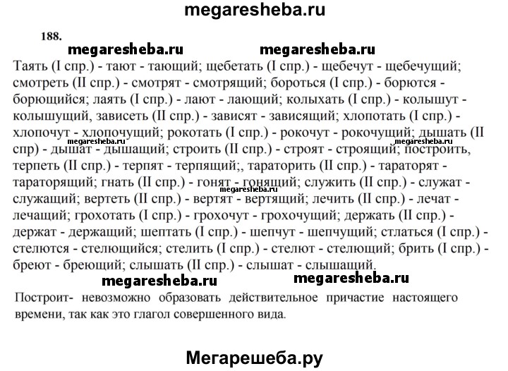 Подробный решебник (ГДЗ) по Русскому языку за 7 (седьмой) класс - готовый ответ упражнение - 188. Авторы учебника: Баранов, Ладыженская, Тростенцова. Издательство: Просвещение 2015-2024.